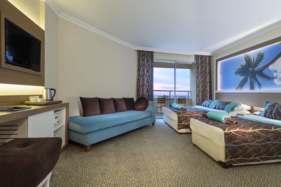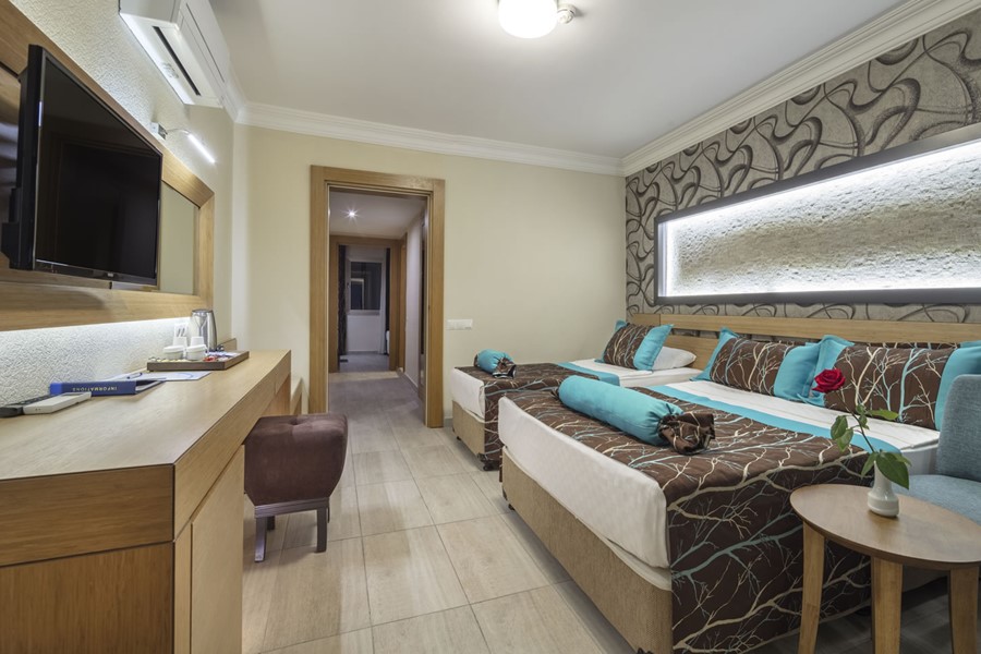 Diğer imkanlar arasında biri su kaydıraklı olan açık ve kapalı havuzlar, özel plaj alanı ve su kaydıraklı iskele yer alır.